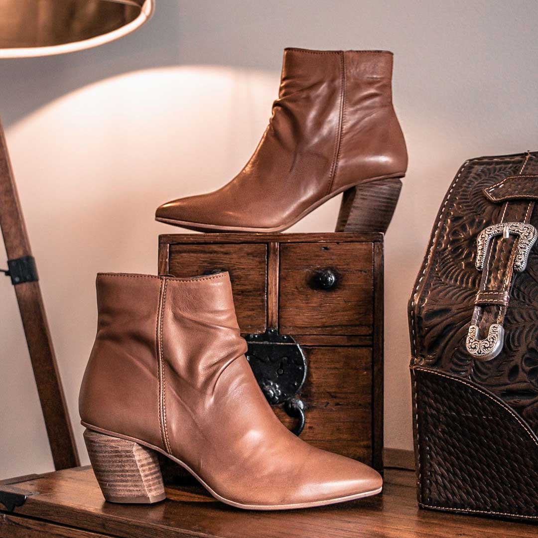 Built-in Portugal with only the purest leathers, this ruched model will add charisma to your wardrobe. Uniquely manufactured and on-trend, the ATTICA flaunts an inside zip so you can slide in with ease and rests on a perfectly lifted, wooden stack heel. This comfortable and secure ankle boot showcases the best of EOS construction.
